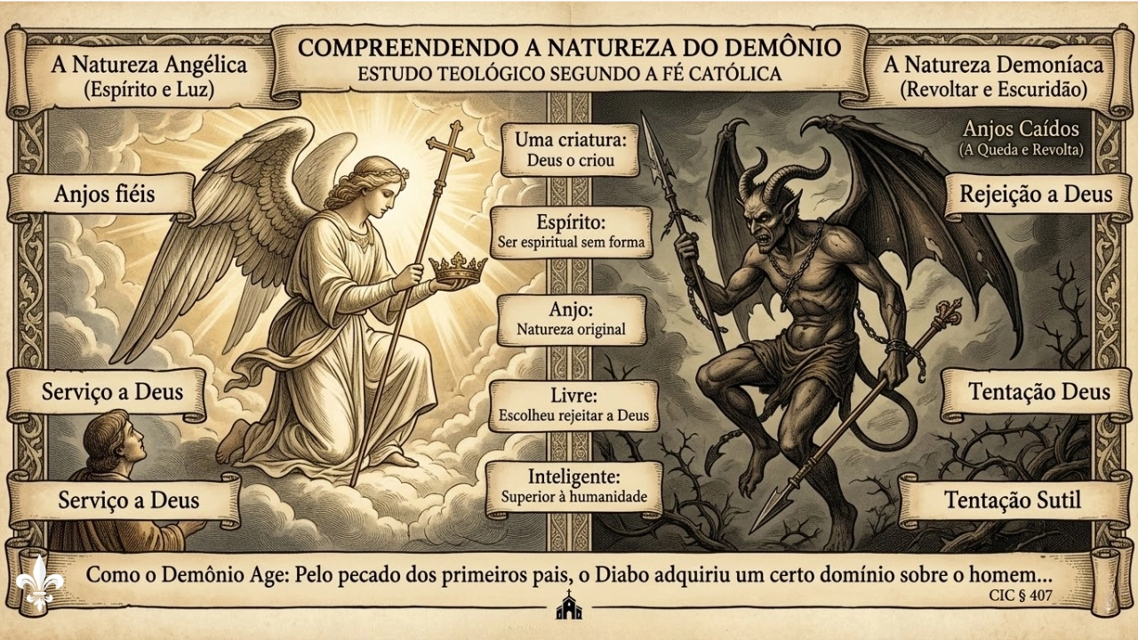O demônio é uma criatura que escolheu livremente viver fora da graça divina. Por ódio a Deus e à Sua criação, esses seres buscam levar a humanidade à perdição.